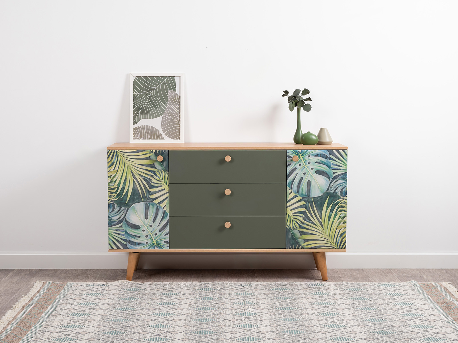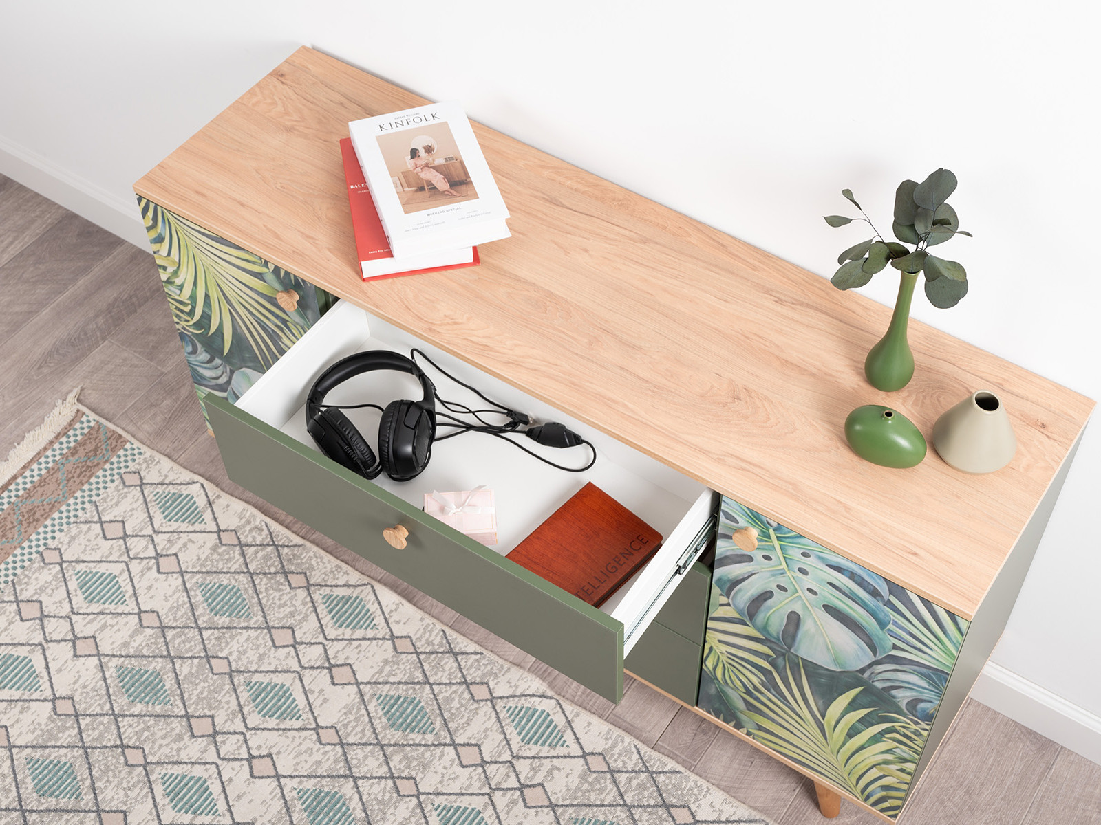 Цветовое решение: Дымчатый Зеленый, Гикори Рокфорд Натуральный, Белый шагрень