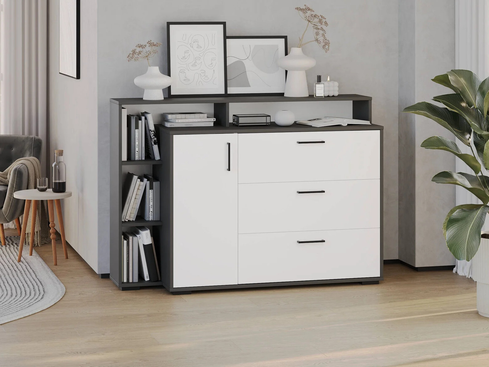 - Комод с дверкой и тремя ящиками 4-4423 Графит, Белый