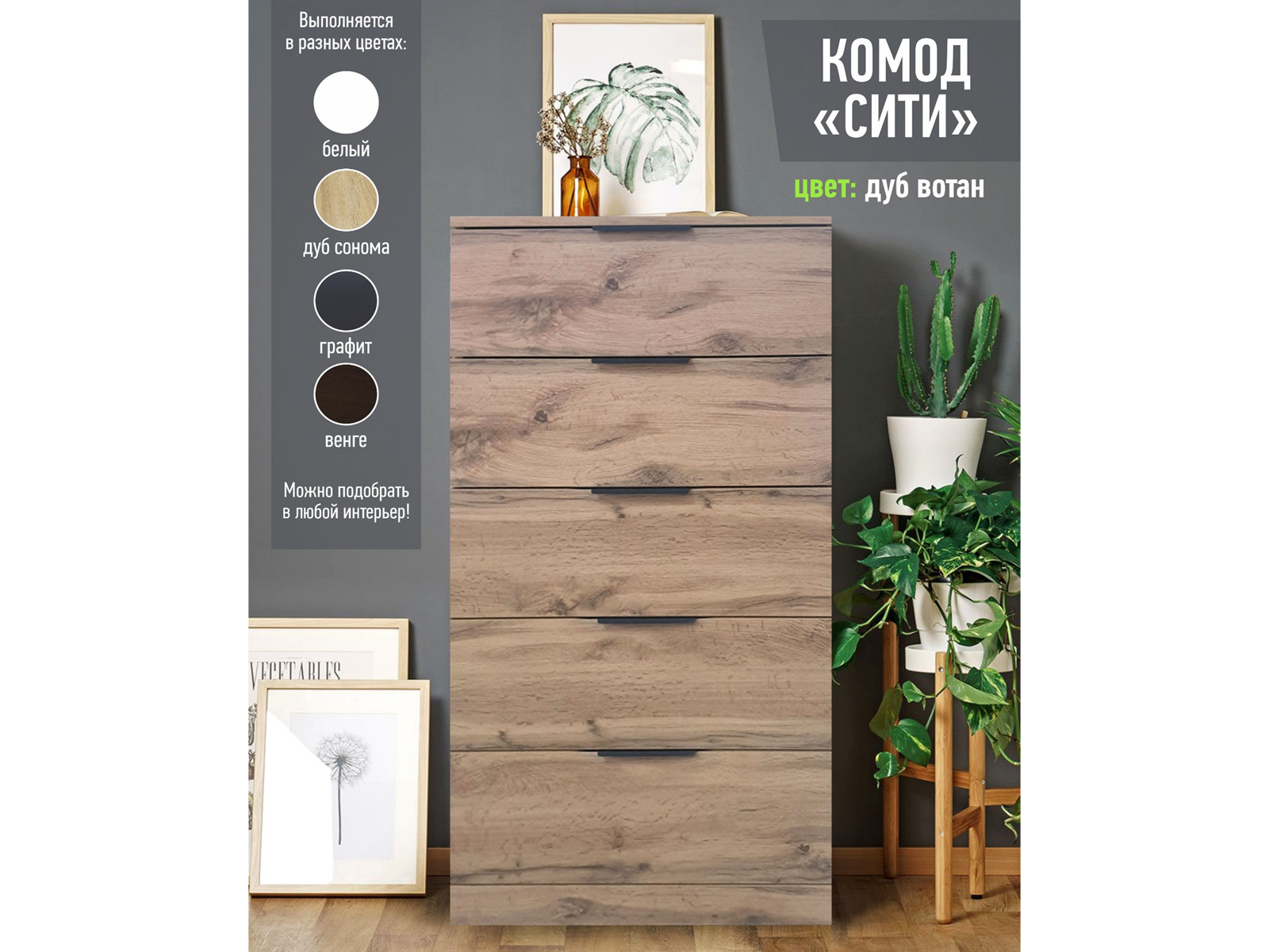 - Комод Сити 600 дуб вотан