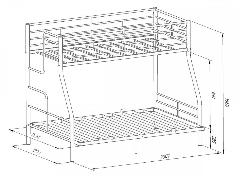 Размер нижнего спального места: 1400х1900 мм