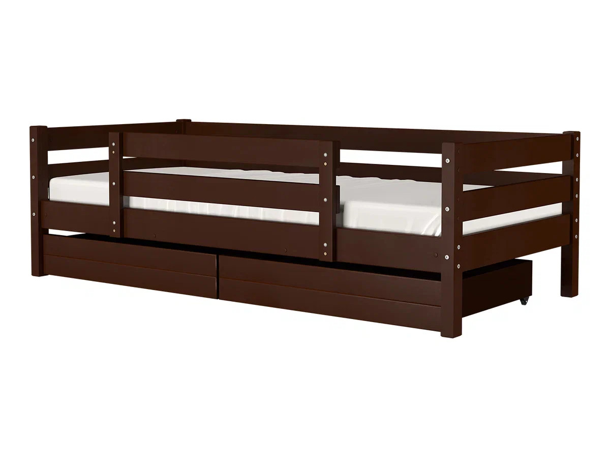 - Кровать Глория с бортиком и ящиками Орех