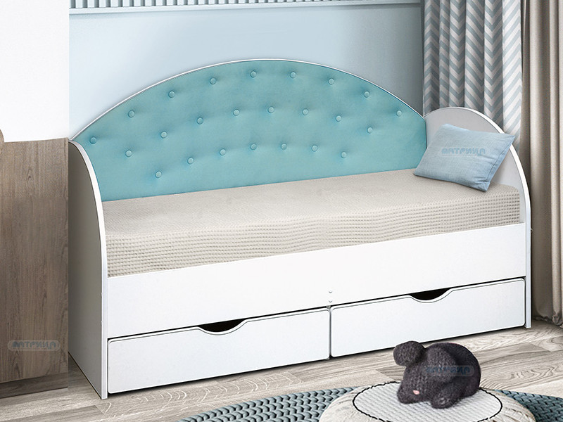 - Кровать с продольной мягкой спинкой Софа №10 бирюза 800х1600