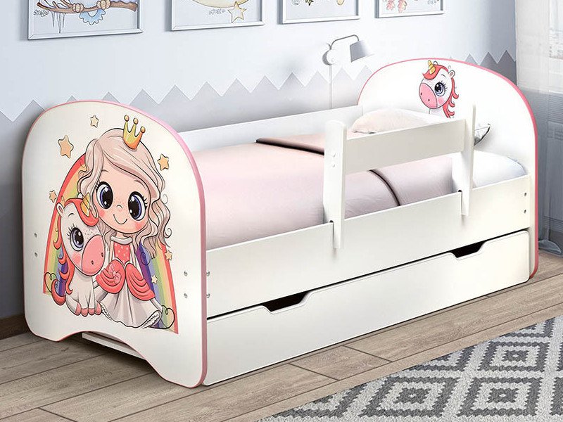 - Кровать детская с фотопечатью с 1 ящиком Принцесса