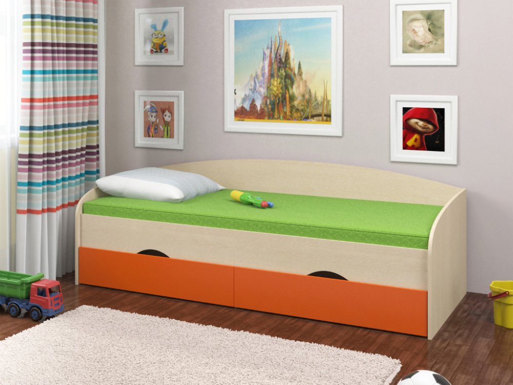 Кровать Соня 2 дуб молочный-оранжевый