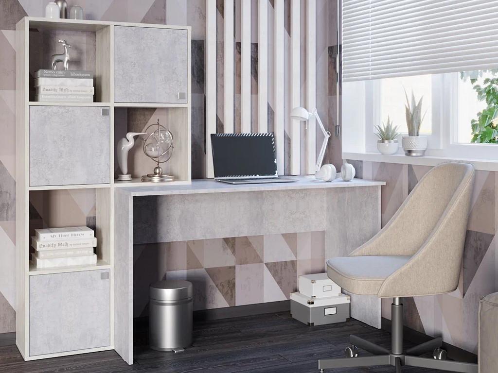 - Стол компьютерный СК Юджин дуб крафт белый/цемент светлый