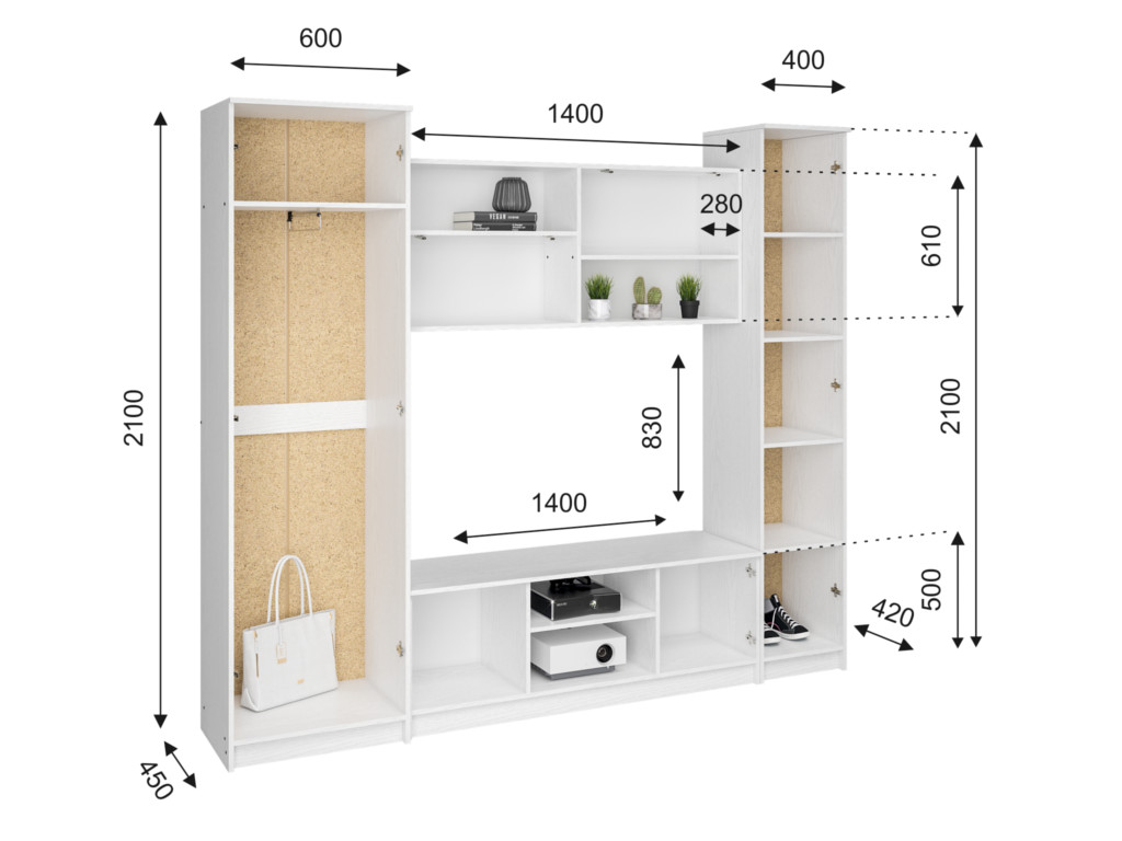 Размеры пенала (ШхВхГ): 400х2100х420 мм