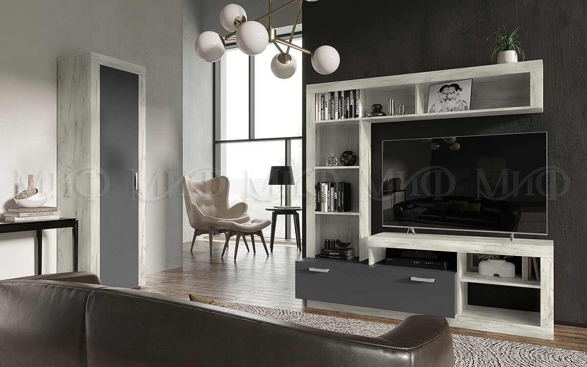 Гостиная модульная Ангара Графит, Дуб Крафт Белый