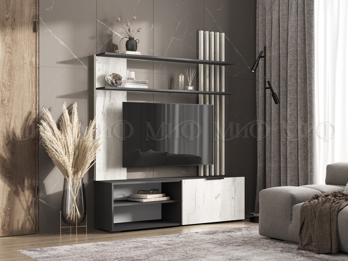 - Гостиная Роджина Дуб Крафт Белый, Графит