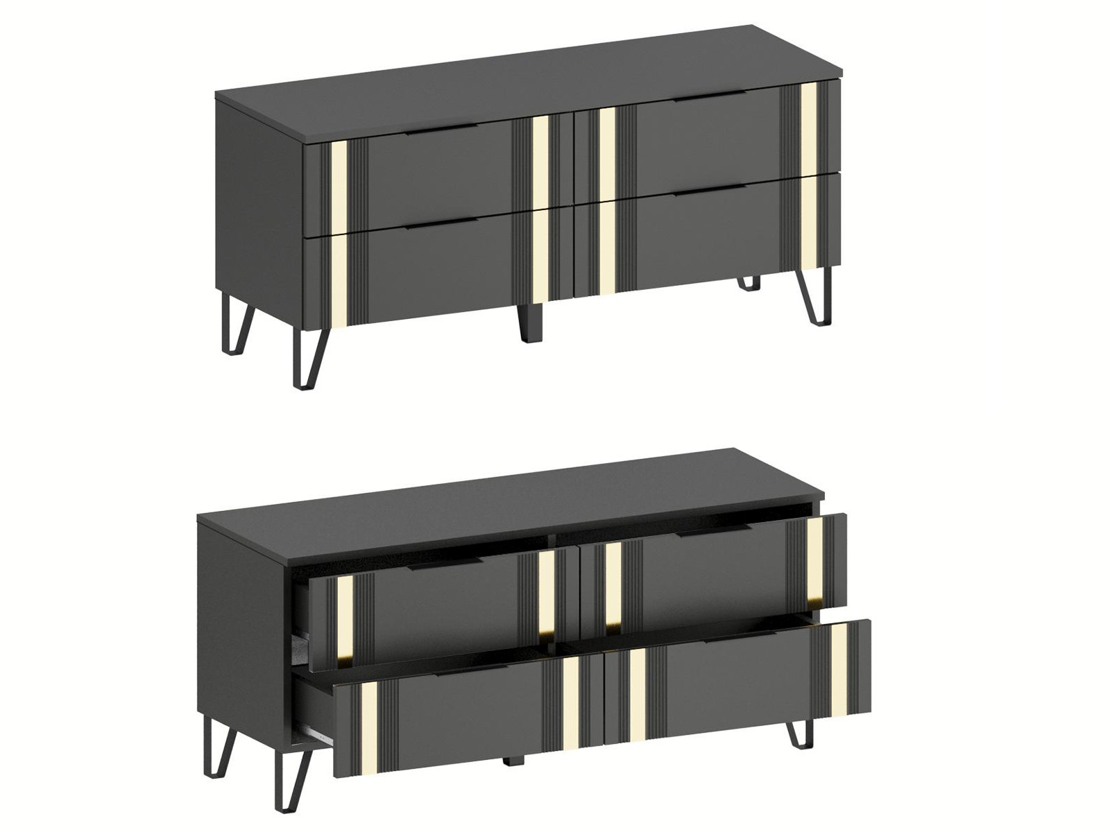 - Фасады МДФ украшены декоративной металлической лентой в цвете "Золото браш".