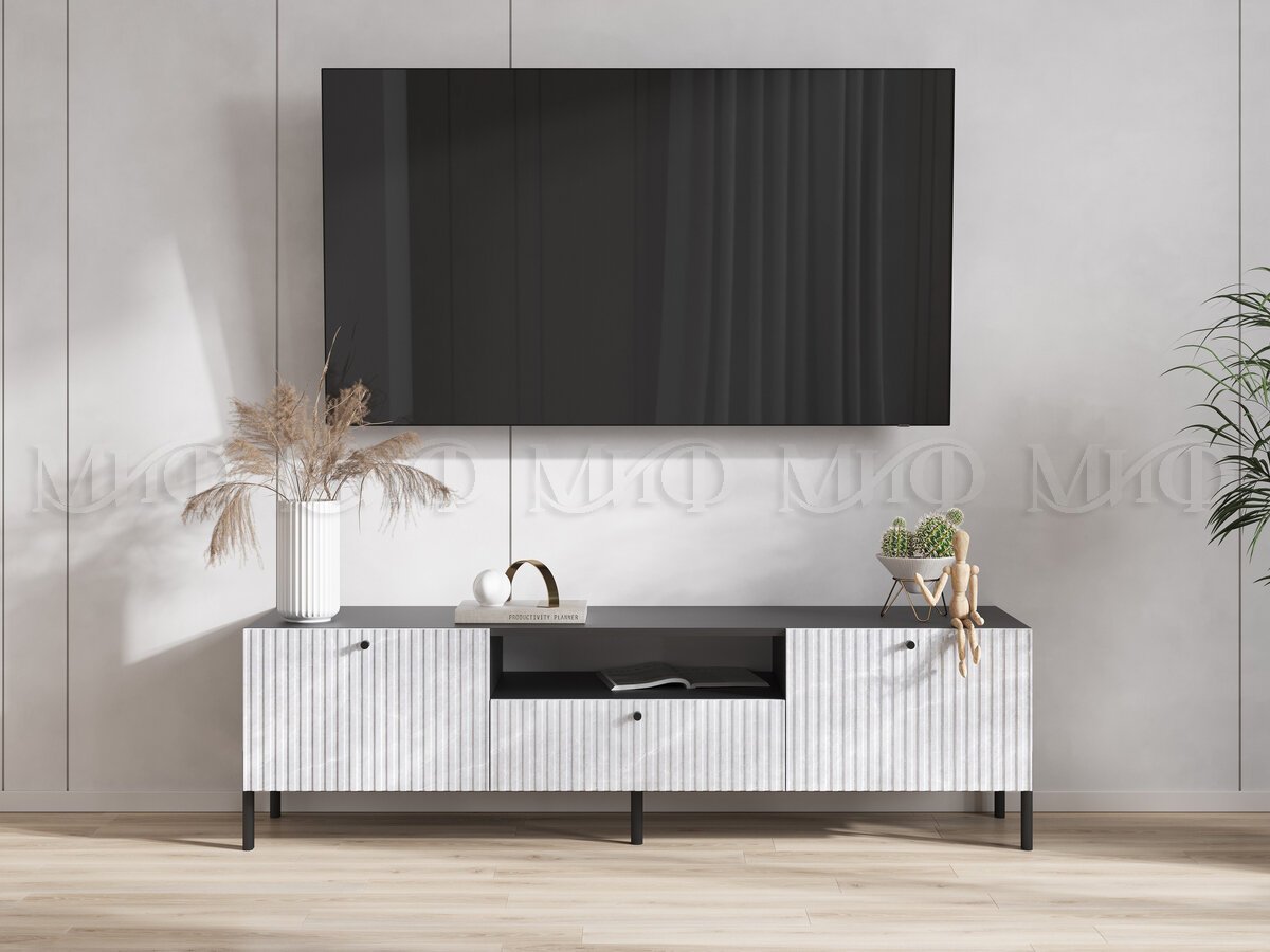 - Тумба ТВ малая (металл) Оливия Мрамор Глянец, Графит
