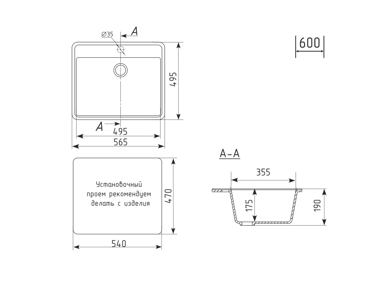 - Кухонная мойка Uperwood ECON UPD-104-001 белая матовая