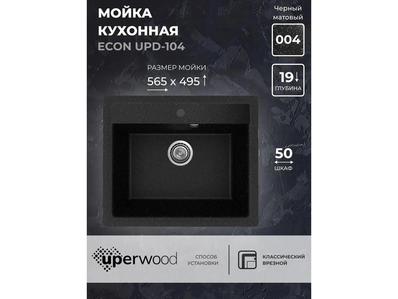 - Кухонная мойка Uperwood ECON UPD-104-004 черная матовая