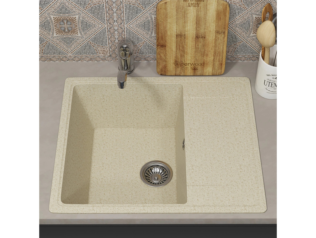 - Кухонная мойка Uperwood ECON UPD-201-002 бежевая матовая