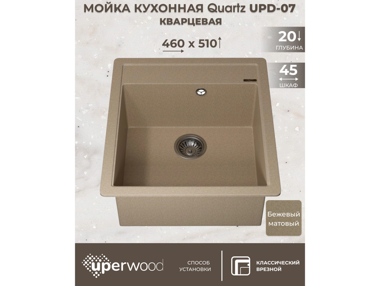 Кухонная мойка Uperwood Quartz UPD-07-02 бежевая матовая