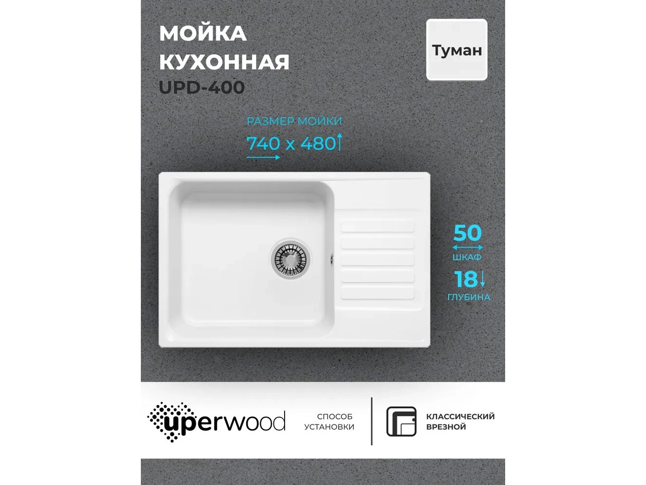 - Кухонная мойка Uperwood UPD-400 туман