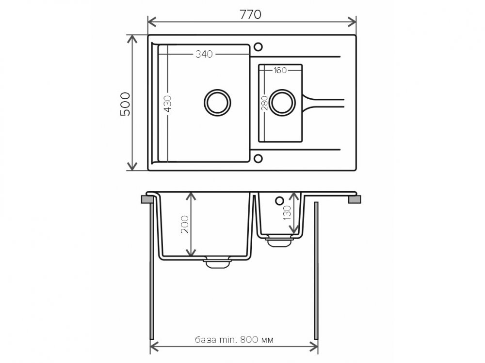 Длина мойки, мм: 770