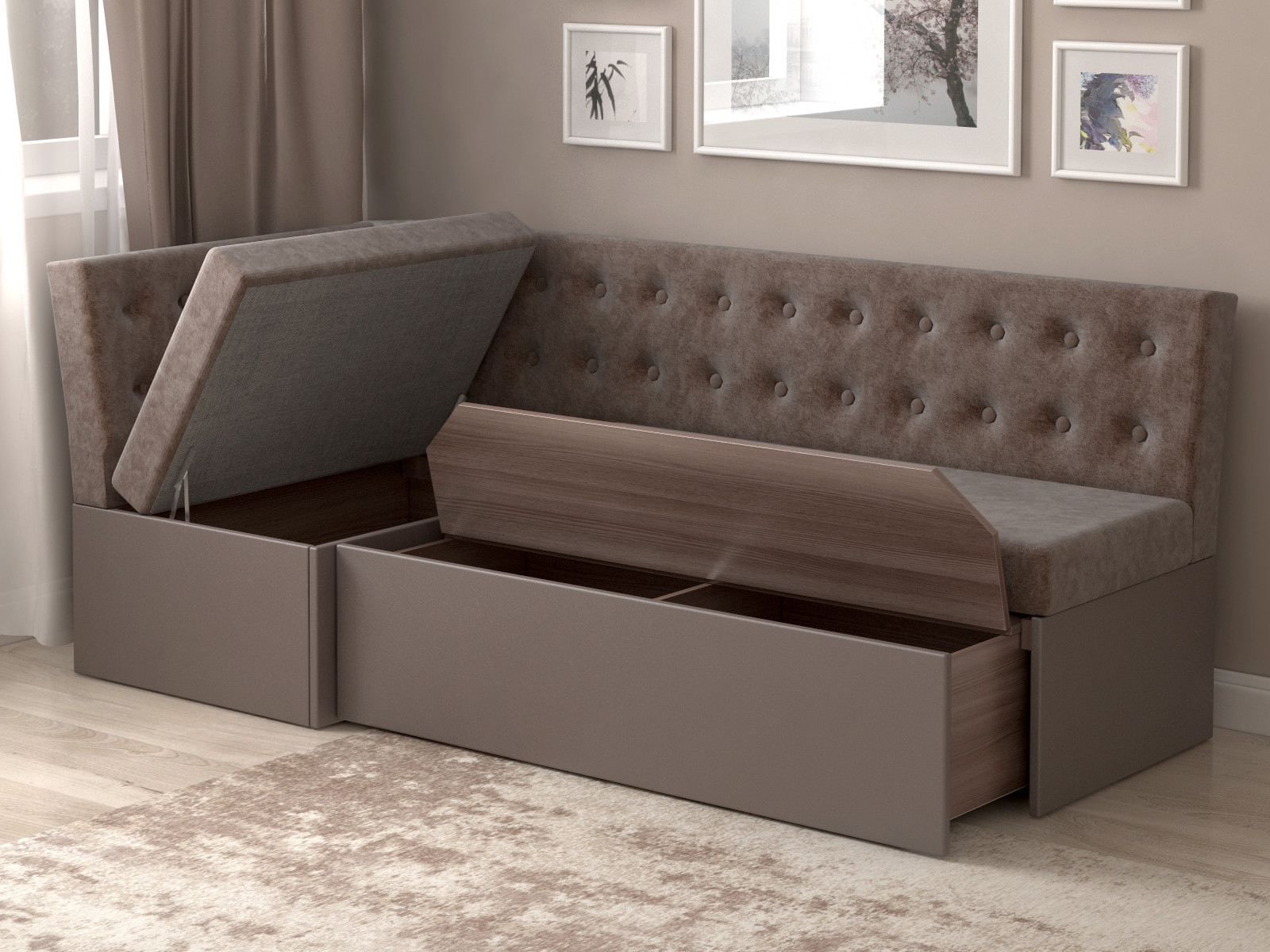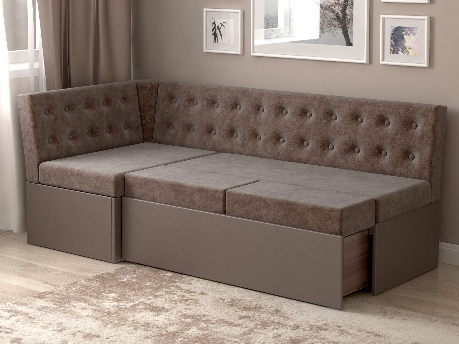 - Скамья угловая со спальным местом Олимп темно-серый