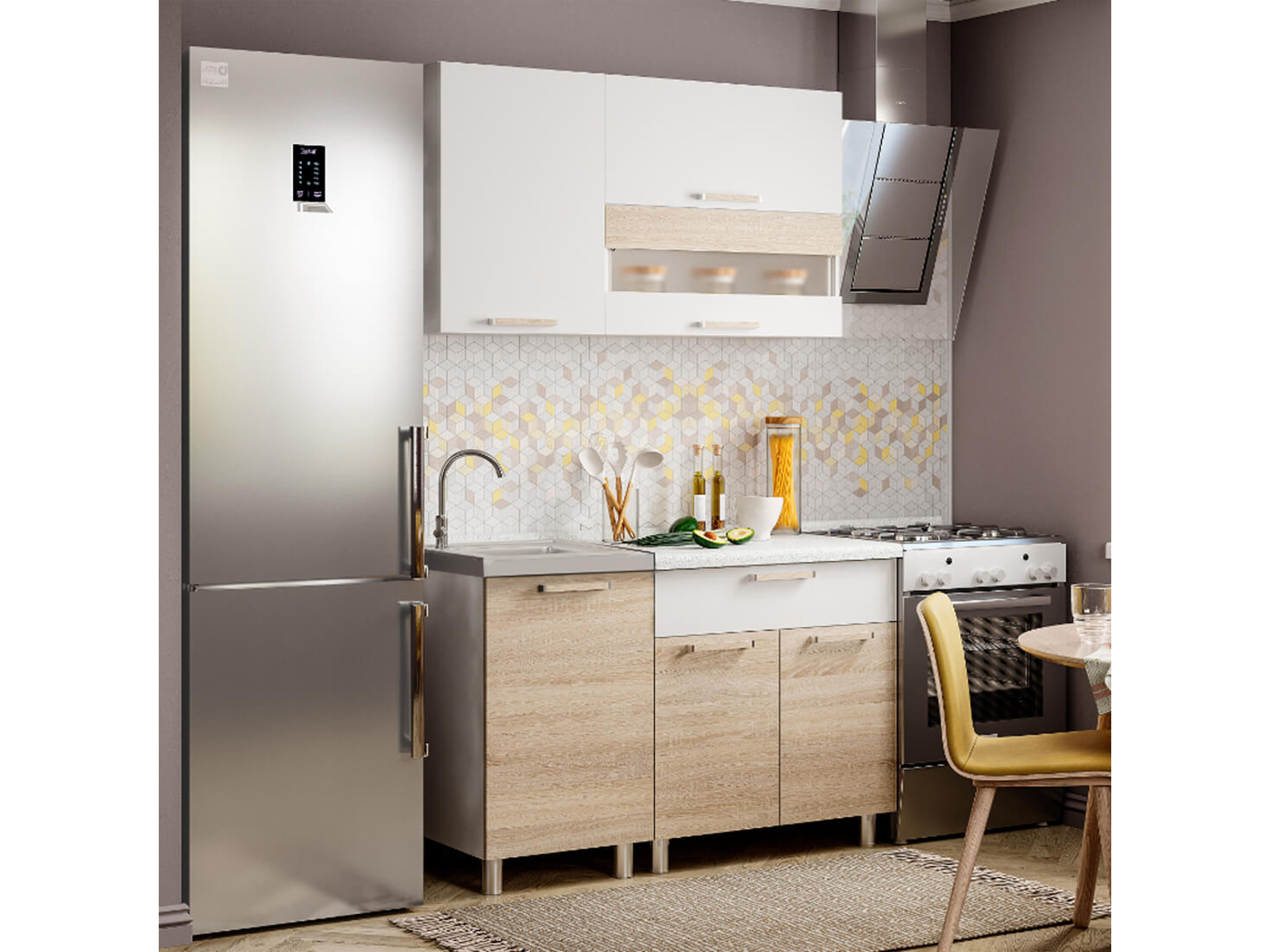 Габаритные размеры композиции нижних модулей с учётом столешницы: ширина - 1200 мм, высота - 846 мм, глубина - 595 мм.