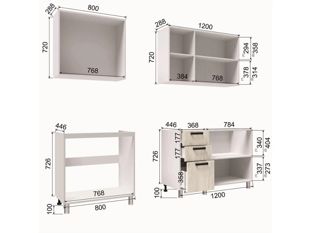 - Высота нижних шкафов, мм 826