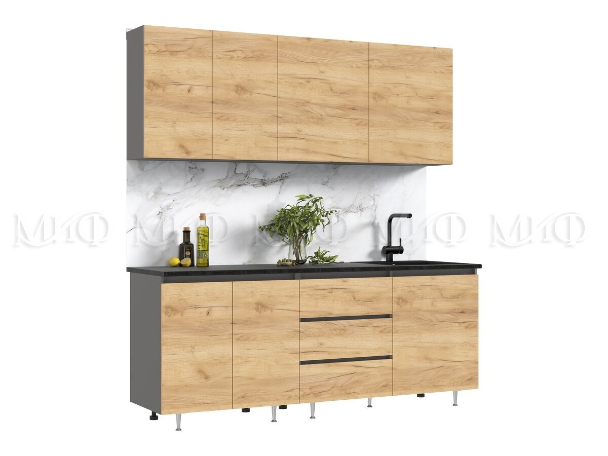 Кухня Челси 2000 мм Компановка №2 Дуб Крафт, Графит (Кастилло)