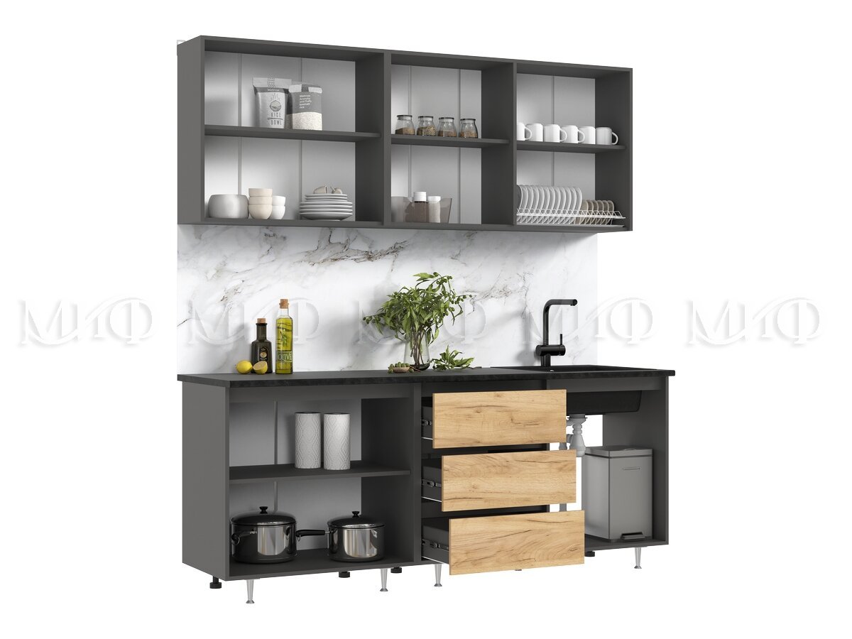 - Кухня Челси 2000 мм Компановка №2 Дуб Крафт, Графит (Кастилло)