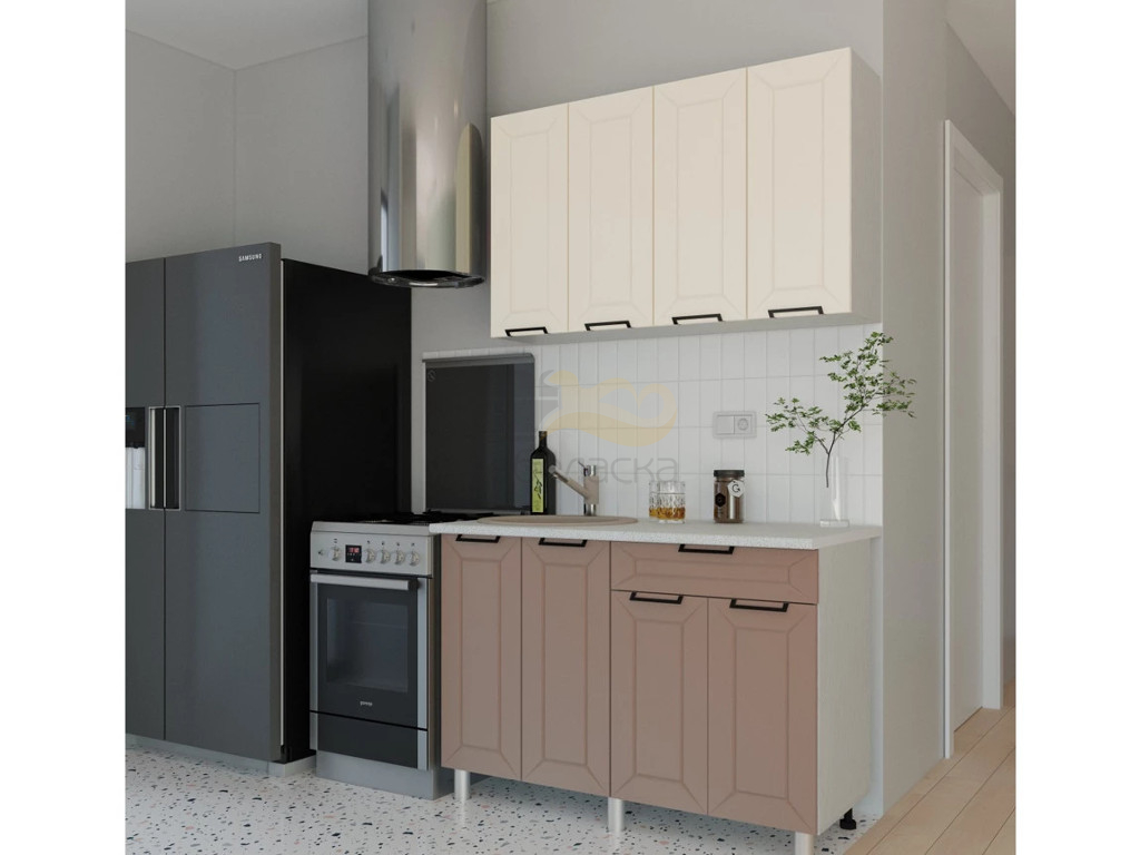 - Кухня Ривьера 1200 МДФ Карбон Брюле/Карбон Латте без столешницы