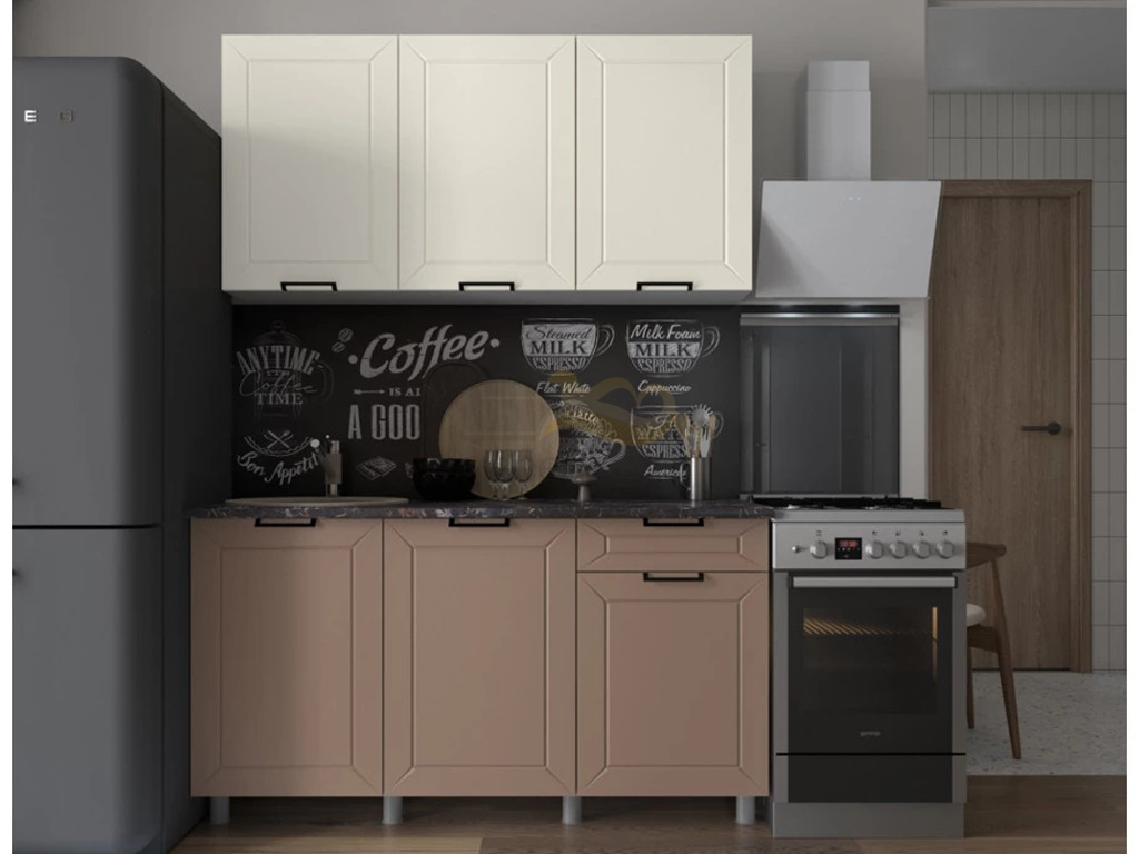- Кухня Ривьера 1500 МДФ Карбон Брюле/Карбон Латте без столешницы