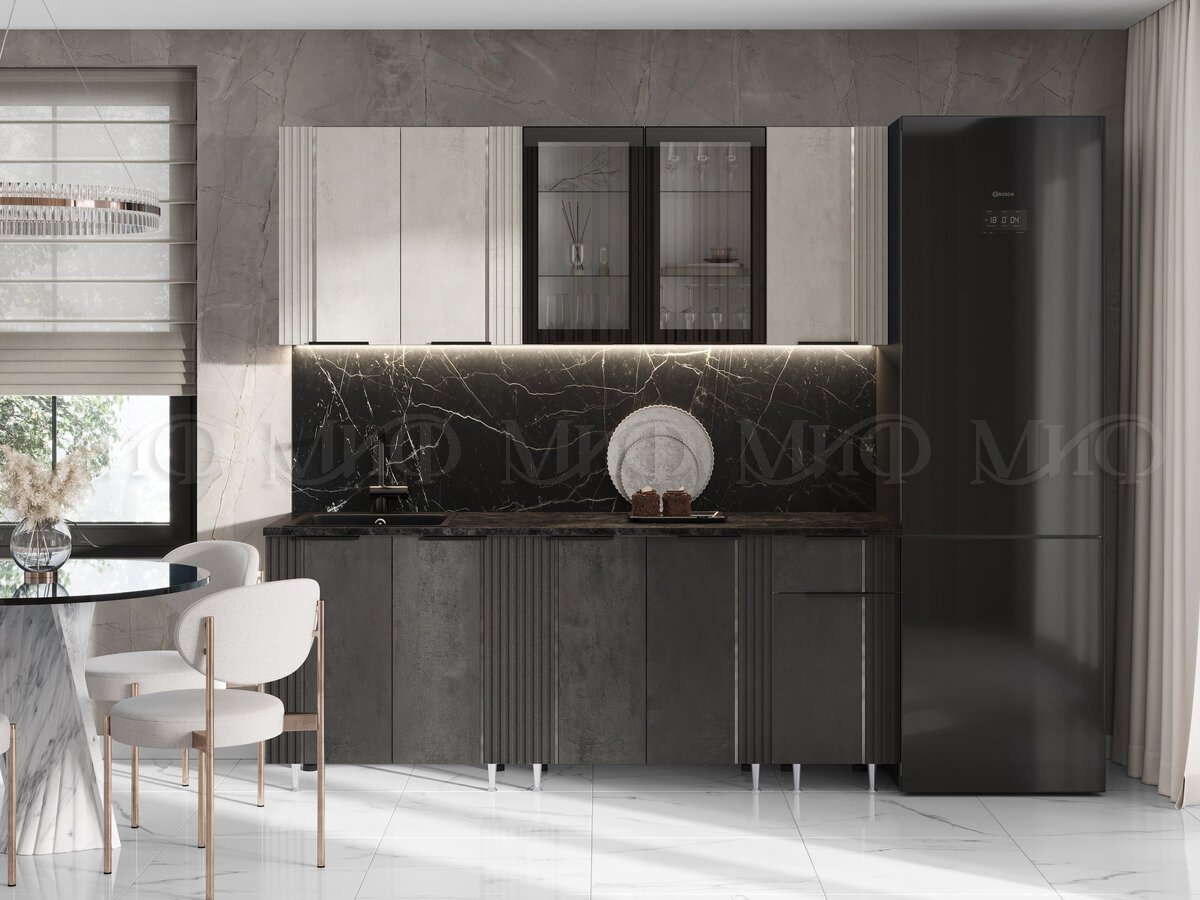 - Кухня Виктория 2000 мм Камень светлый/Камень темный/Белый (Кастилло темный)