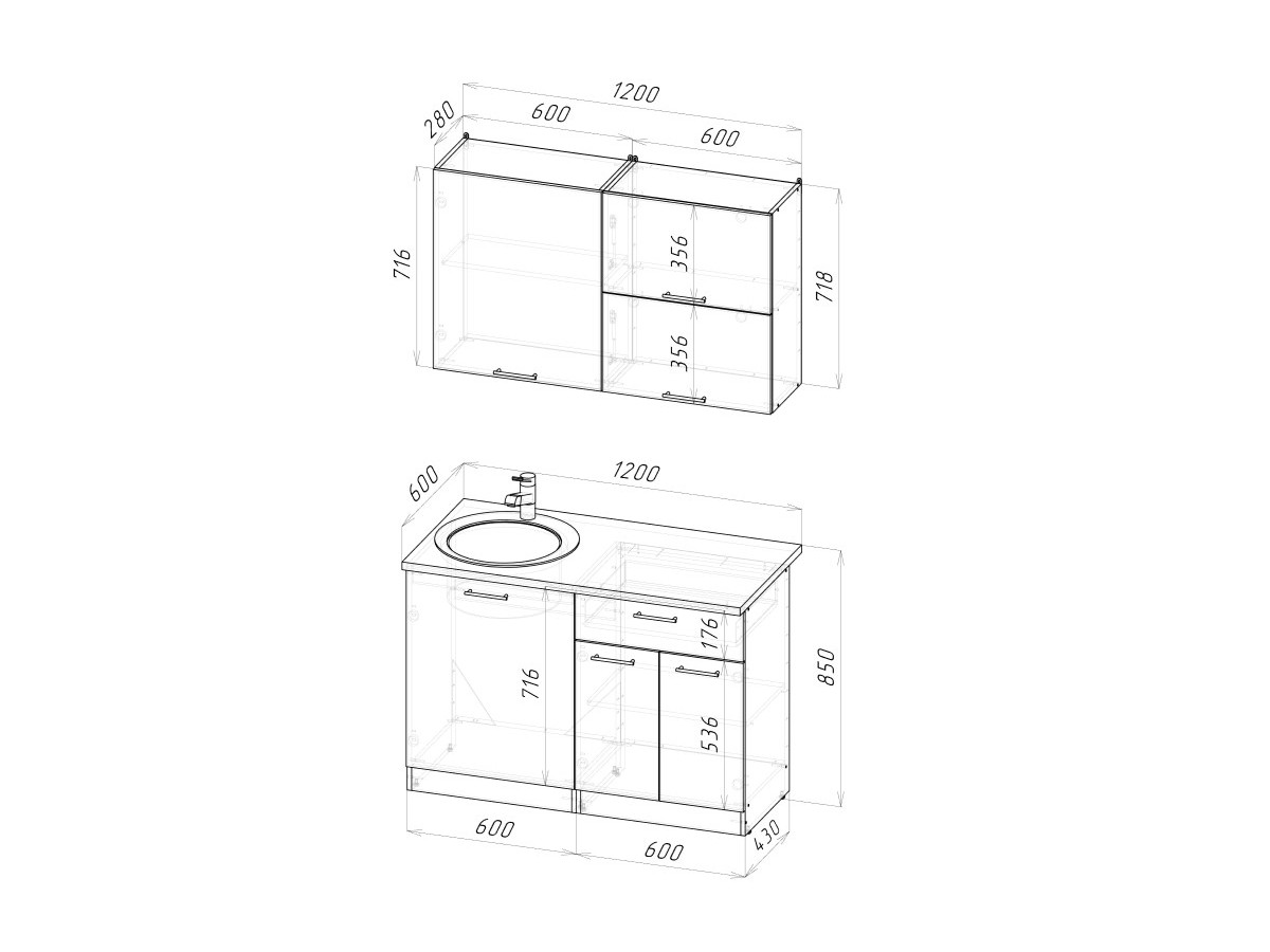 - Кухонный гарнитур Анхель лайт 1200 мм