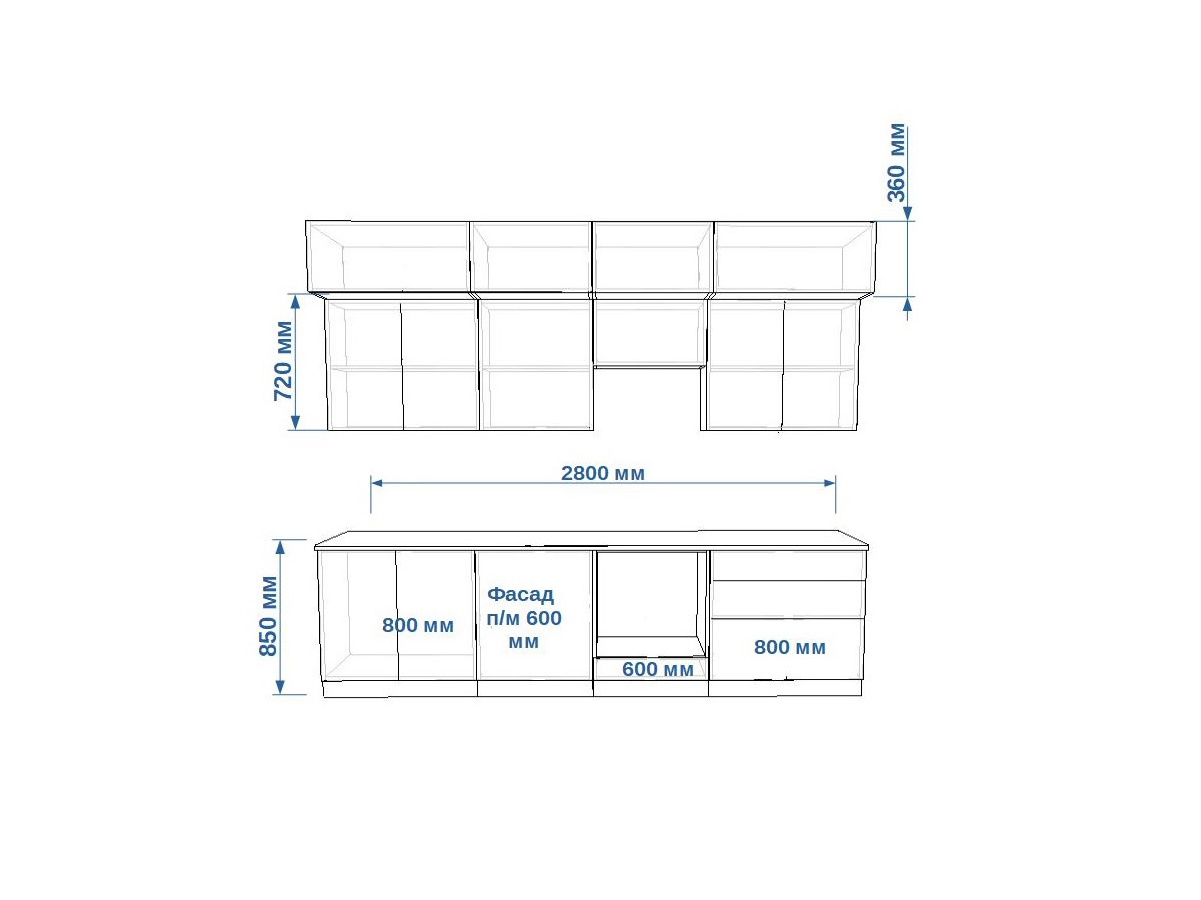 - Кухонный гарнитур арт 16 Фаска Обсидиан Пикрит 2800 мм