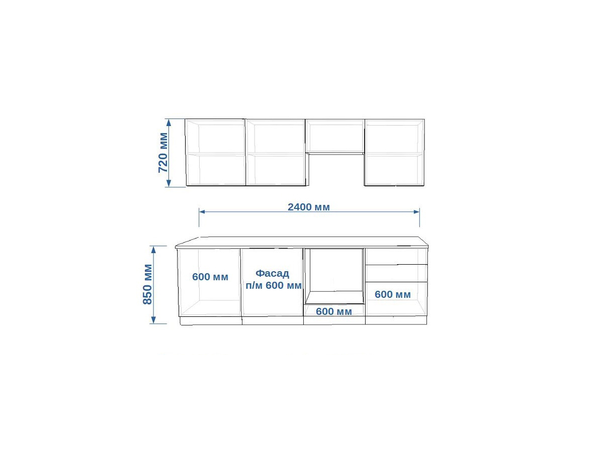 - высота верхних шкафов 720 мм