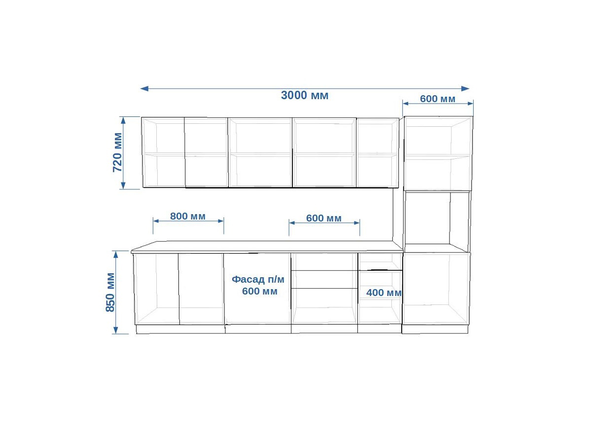 - Кухонный гарнитур арт 4 Фаска Обсидиан 3000 мм