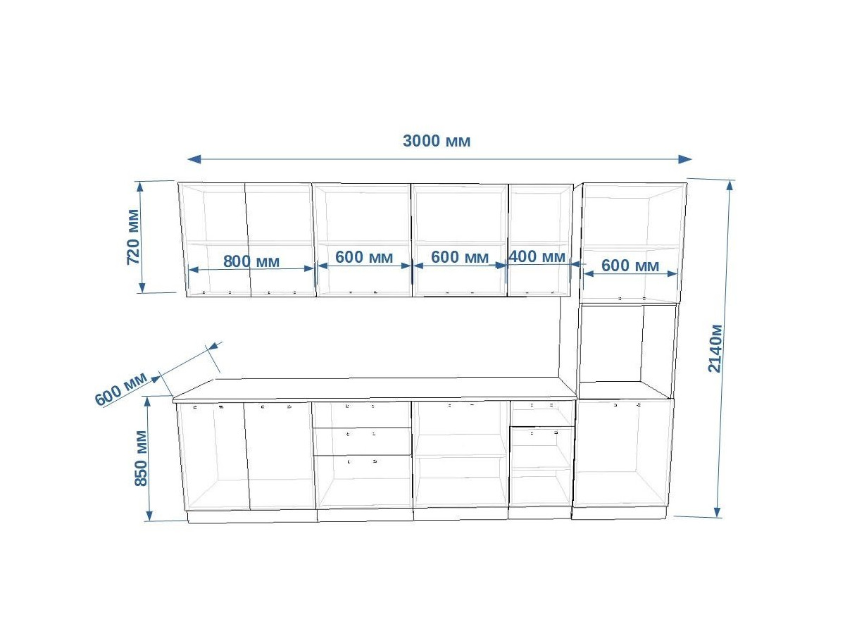 - Кухонный гарнитур арт 4 Океания Кристалл 3000 мм