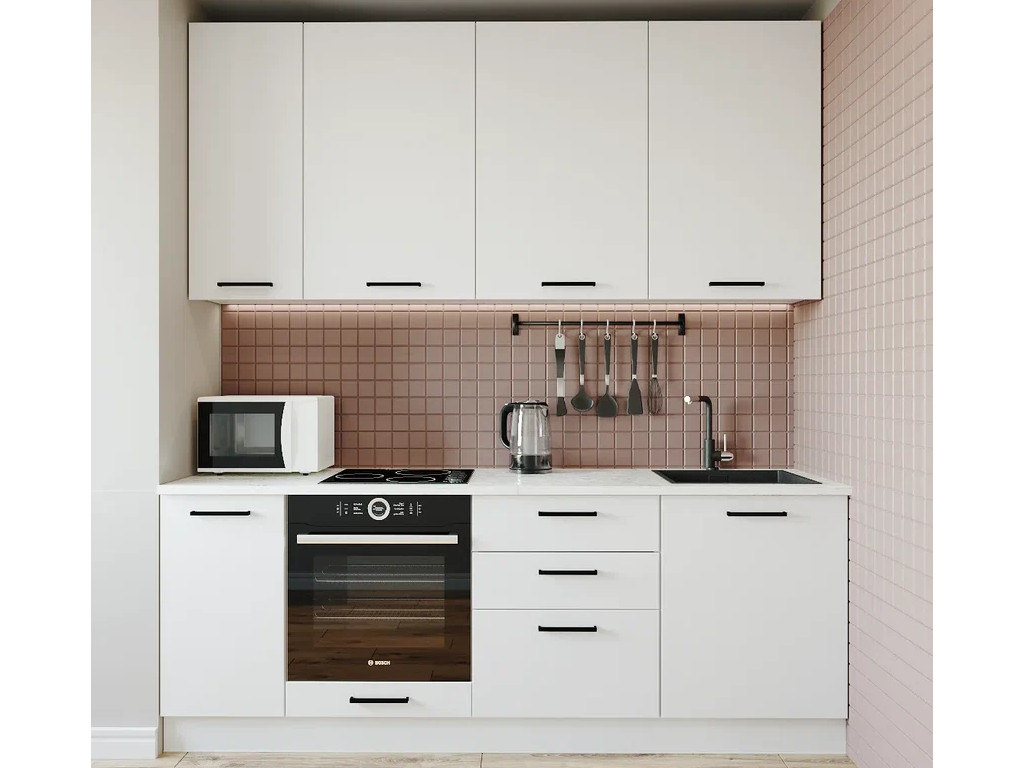 - Кухонный гарнитур Белый Глянец 2200 (верх 950 мм) МДФ