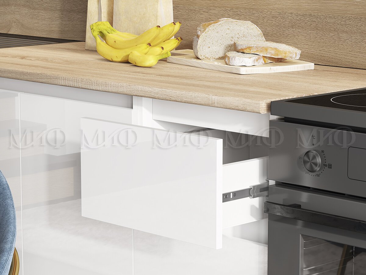 - Фасад: Белый глянец ЛДСП, 16 мм, кромка - Белый глянец