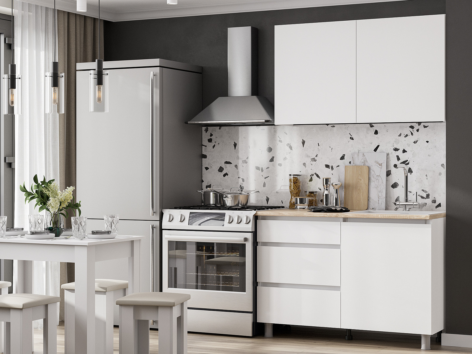 - Кухонный гарнитур Денвер 1200 Белый текстурный