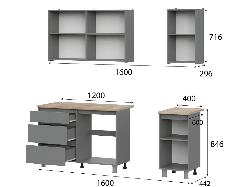 Высота стола со столешницей / высота стола без столешницы - 846 / 820 мм