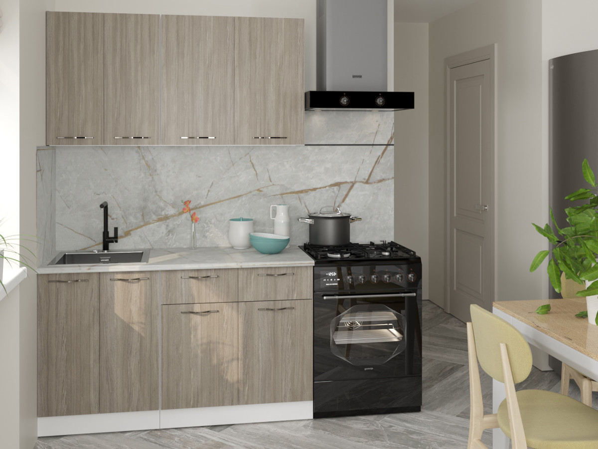 Мойка, смеситель, стеновая панель и посудосушитель в комплект гарнитура не входят.