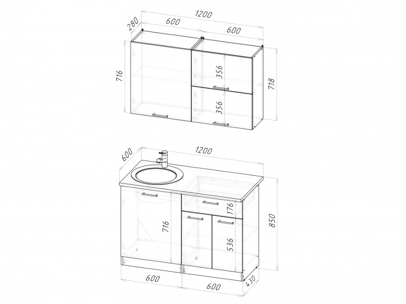 Мойка, смеситель, стеновая панель и посудосушитель в комплект гарнитура не входят.