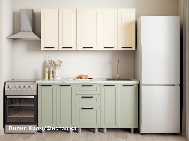 - Кухонный гарнитур Лилия 1600 мм Крем/Фисташка