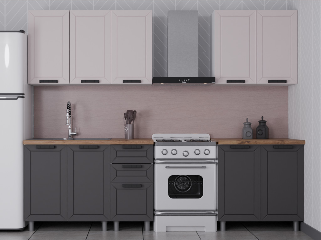 - Кухонный гарнитур Лилия 2000 мм Кашемир/Сталь