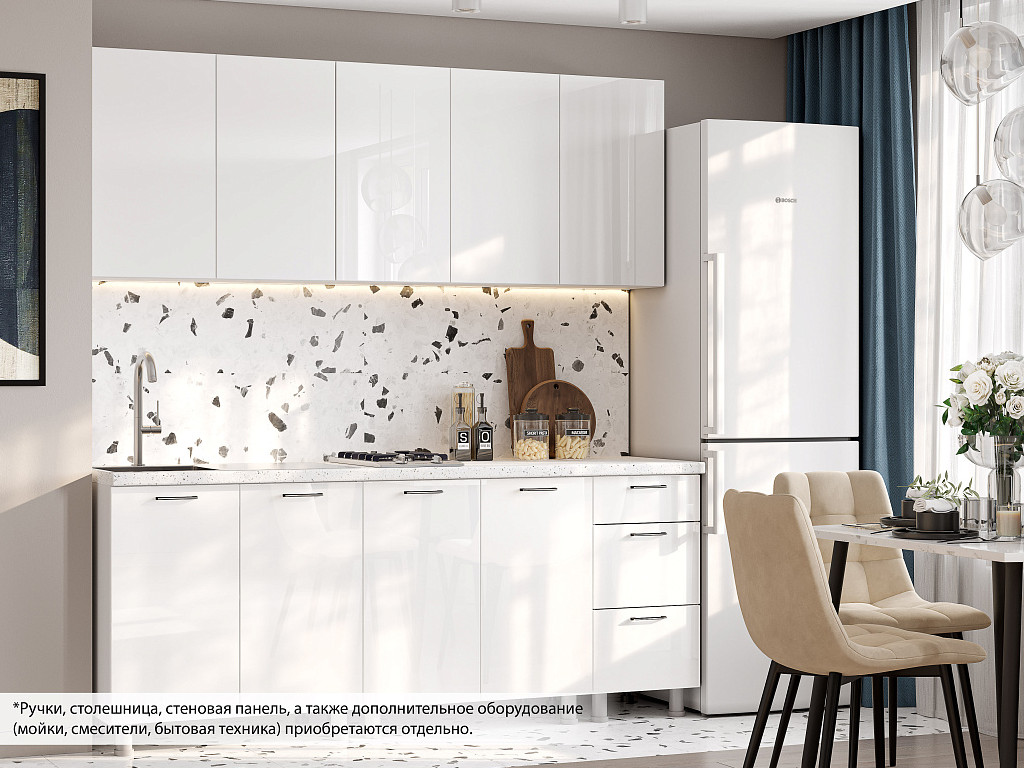 - Кухонный гарнитур Модерн New 2000 МДФ без столешниц Белый глянец