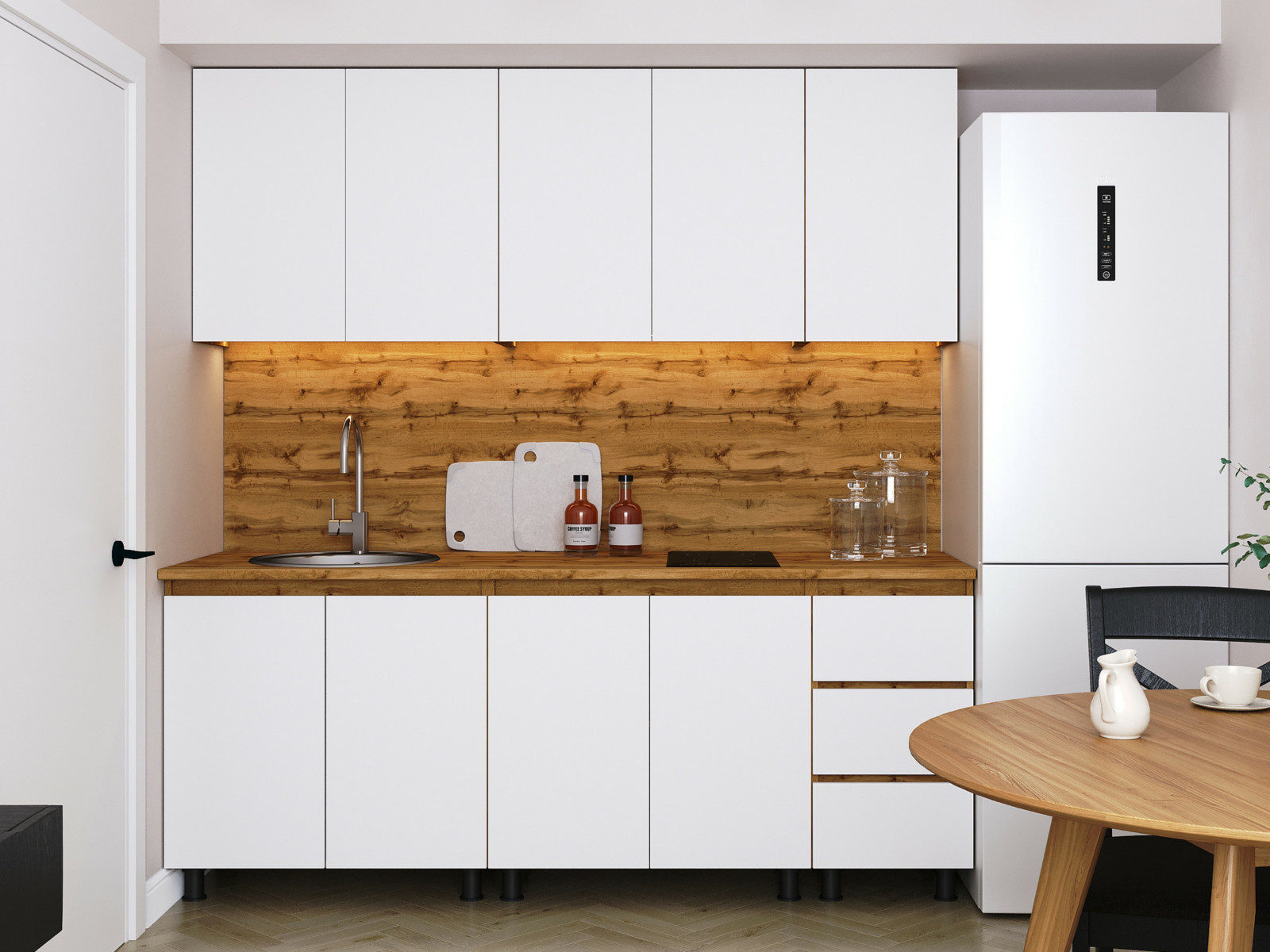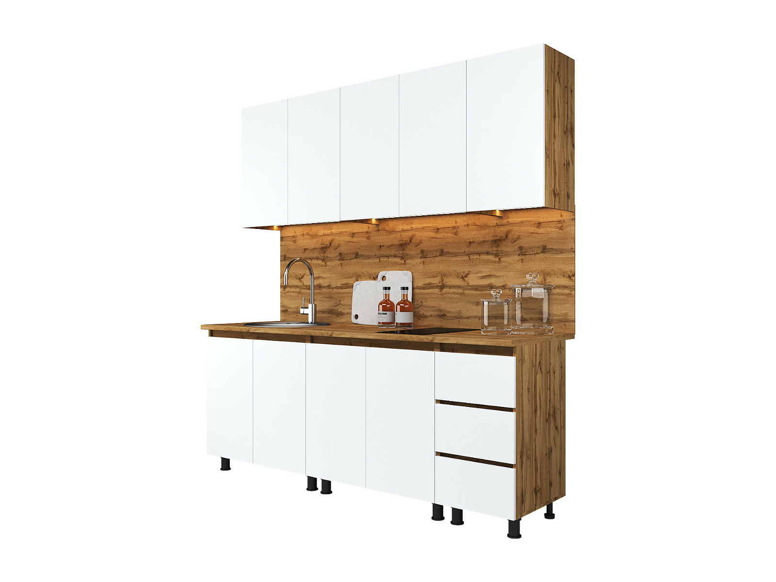 - Кухонный гарнитур Норди Reform 2000 мм ЛДСП Вотан/Белый