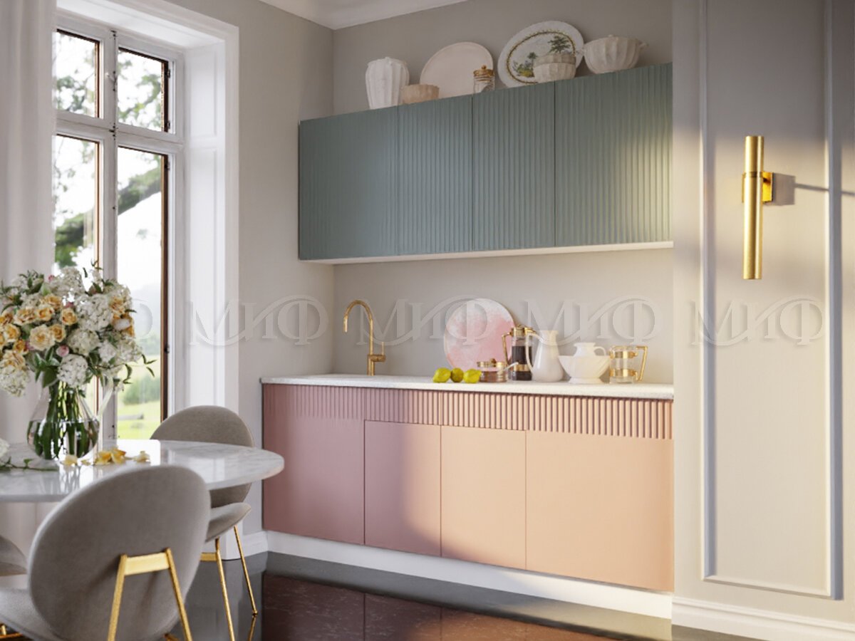 - Кухонный гарнитур Оливия 2000 Шарли Бриз/Шарли Pink