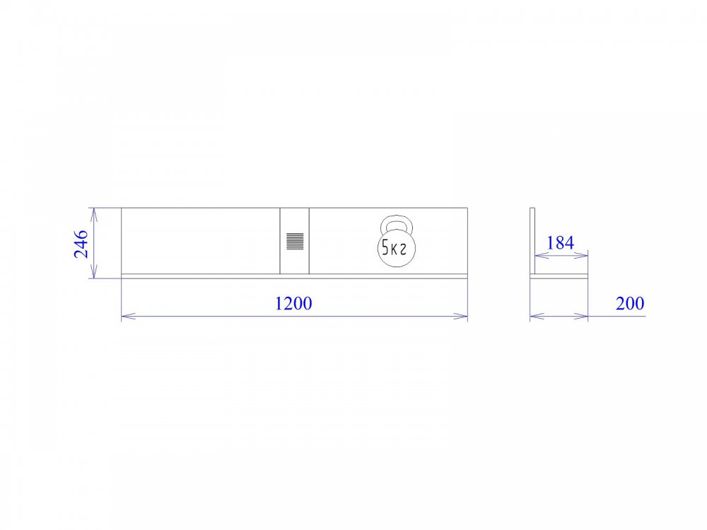 Допустимая нагрузка на полку навесную не более 5 кг.