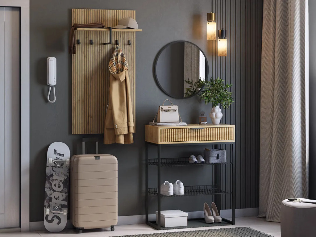 - Прихожая Мебельсон К15 дуб крафт золотой/черный муар
