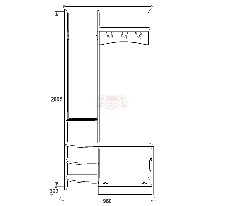 габариты (ВхШхГ): 2005х960х362 мм