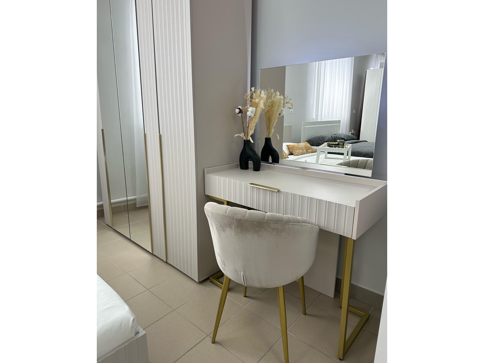 - Декор: Фрезеровка на фасадах, спинках кроватей, царгах