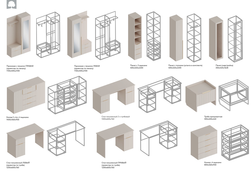 Цена за комплект: Прихожая с зеркалом (правое исполнение)