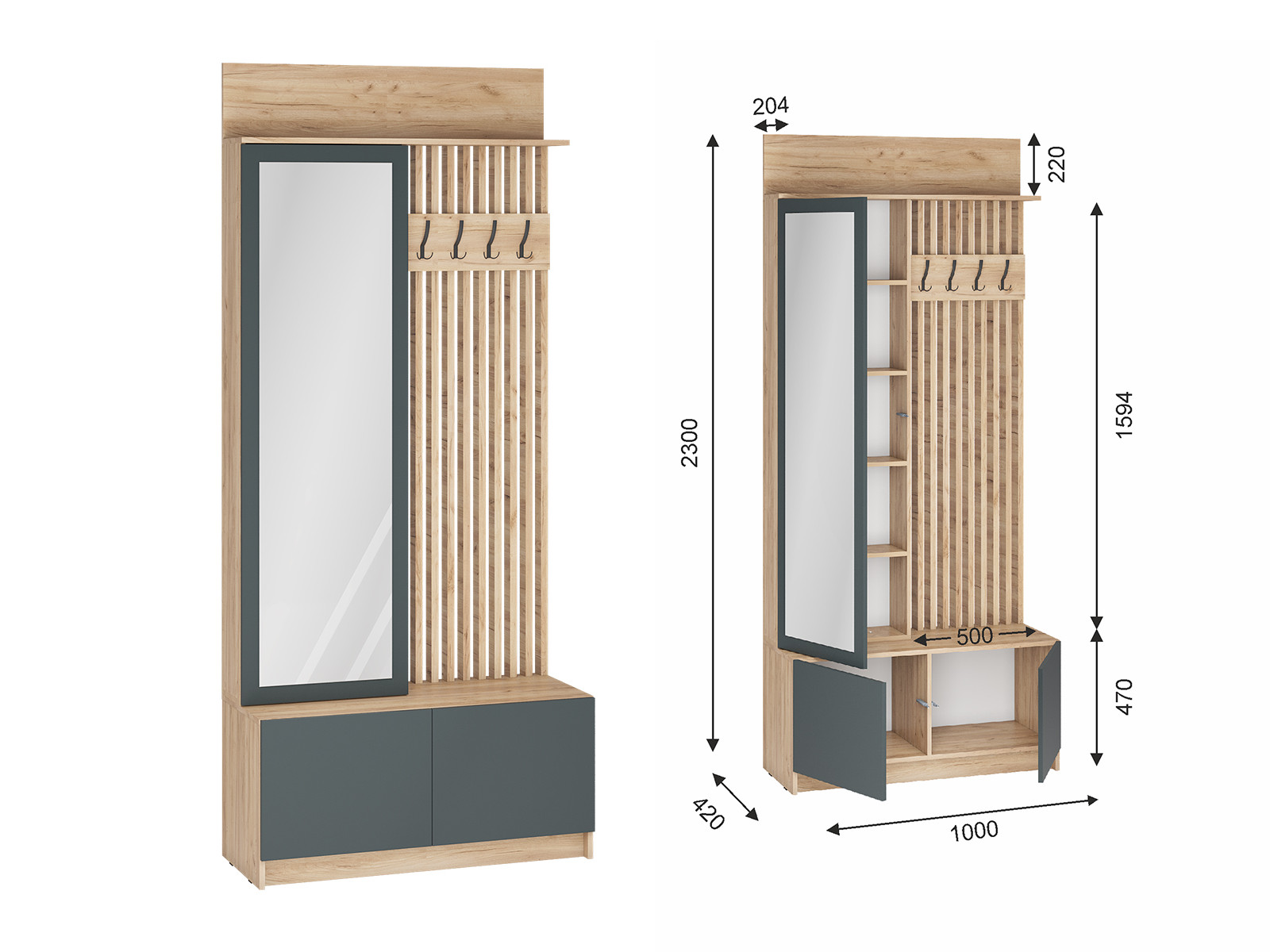 Прихожая Вита левая тёмно серый лофт